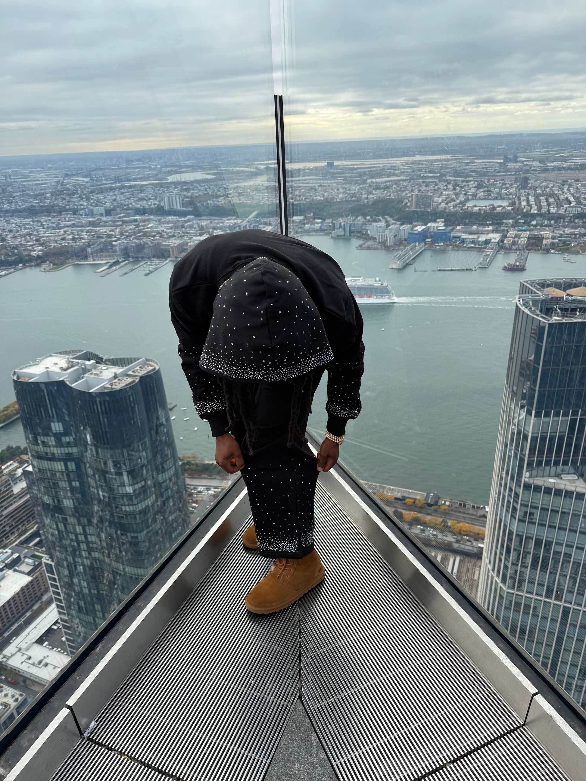 - Rhinestone embellishments across hood, lower pant legs, and subtle star scatter